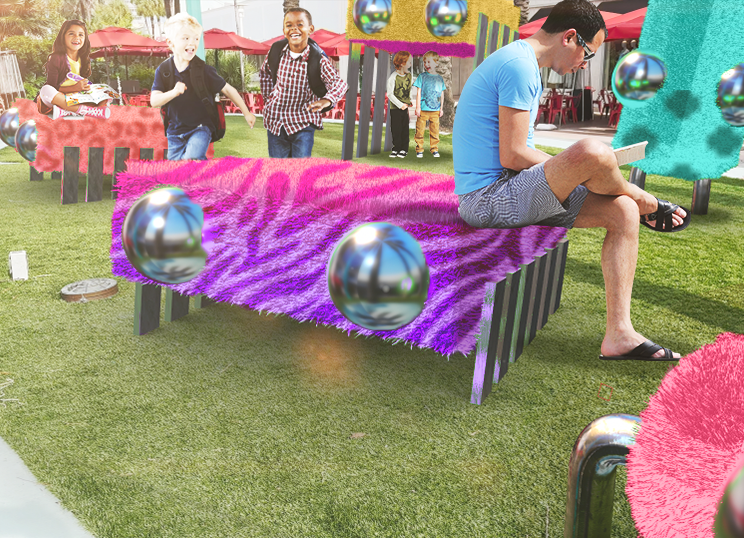 The Euclid Oval on Lincoln Rd, in particular, is one location we believe our colorful robots could breathe a little more life and vibrant energy. While this event stage was intended for occasional outdoor performances, we have only ever seen one such occasion in our 2+ yrs living 2 blocks away.